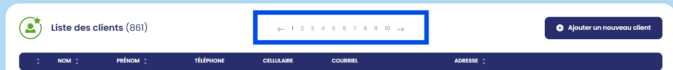 À la demande de l'équipe du CAB, pour faciliter leur travail, nous avons ajouté la pagination dans le haut des listes des clients et bénévoles en plus de celle qui est déjà dans le bas.