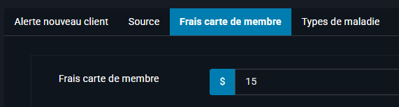 Nous avons ajouté une configuration dans l'administration de l'internet qui permet de gérer le frais pour la carte de membre. Le CAB peut donc décider à tout moment de modifier le prix.