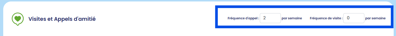 Pour répondre aux besoins du CAB, nous avons ajouté, dans le volet visites et appels d'amitié, la fréquence d'appels par semaine ainsi que la fréquence de visites par semaine.