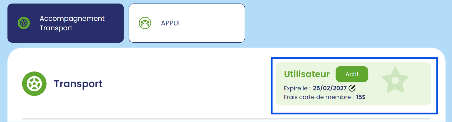 - La carte de membre pour le service des transports